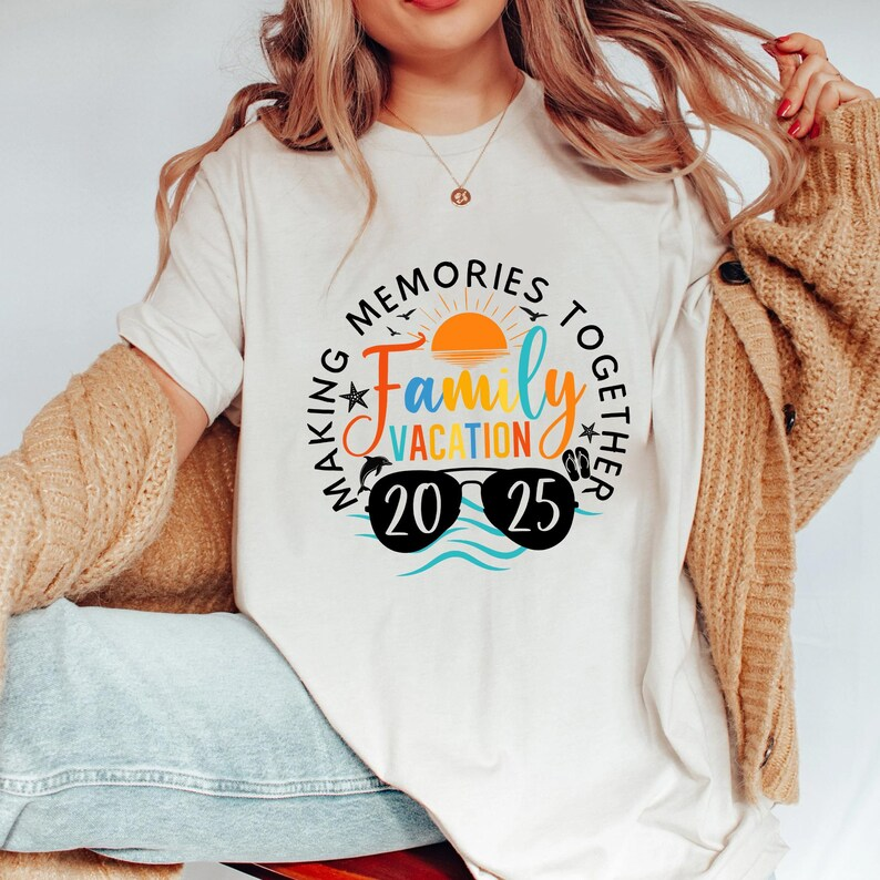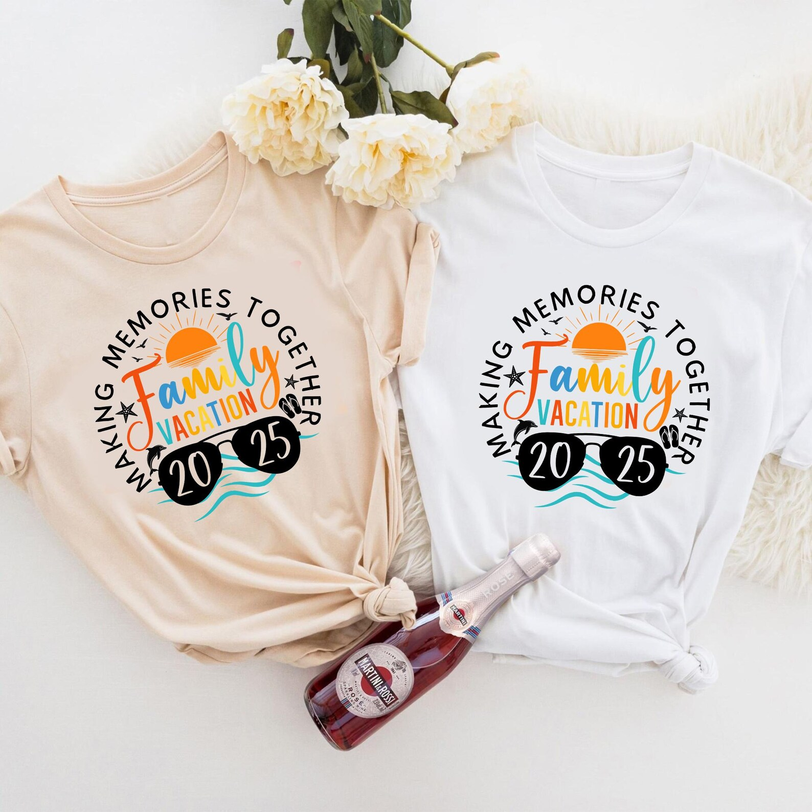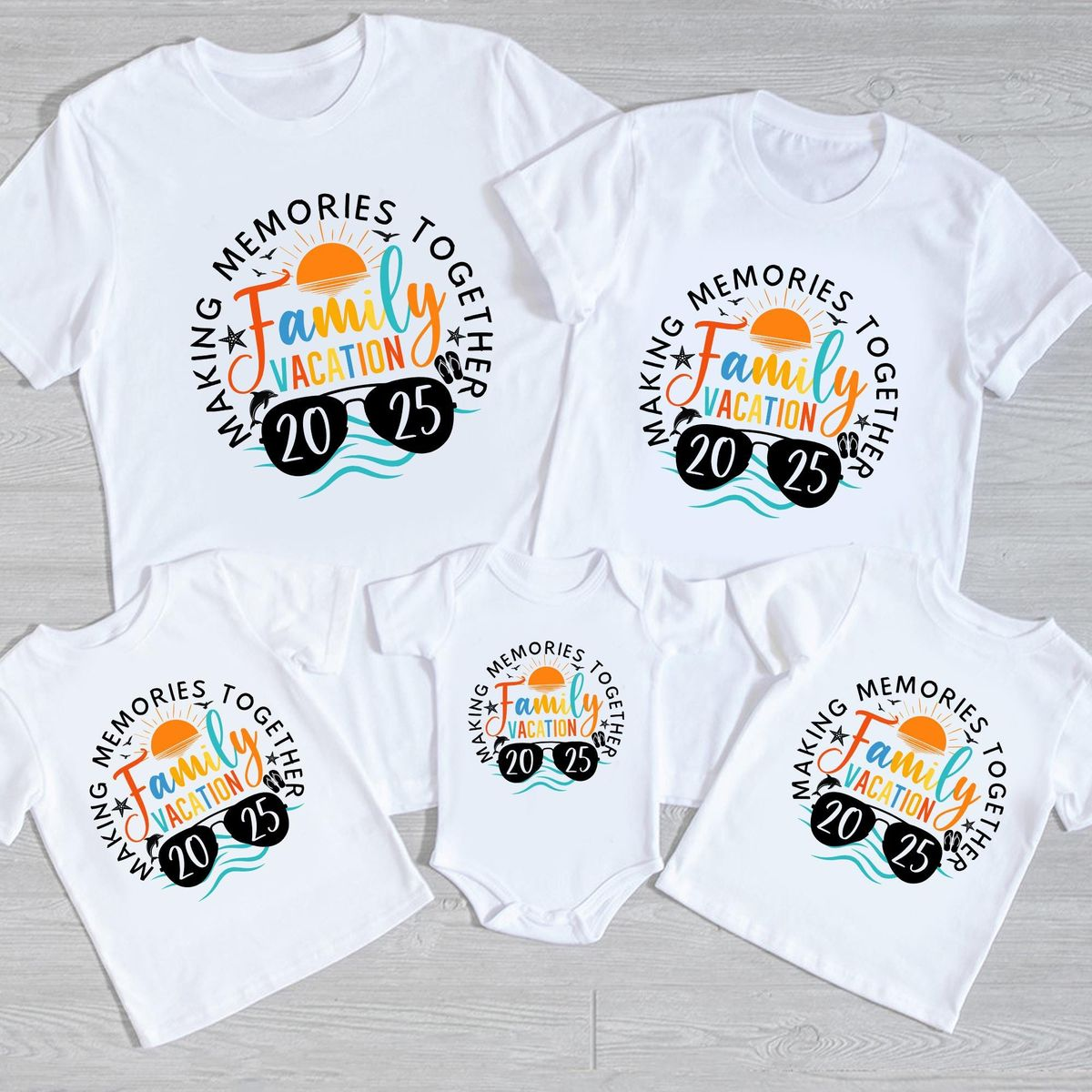 Matching 2025 family vacation t-shirts with a fun and colorful “Making Memories Together” design—perfect for the whole family, including infants!