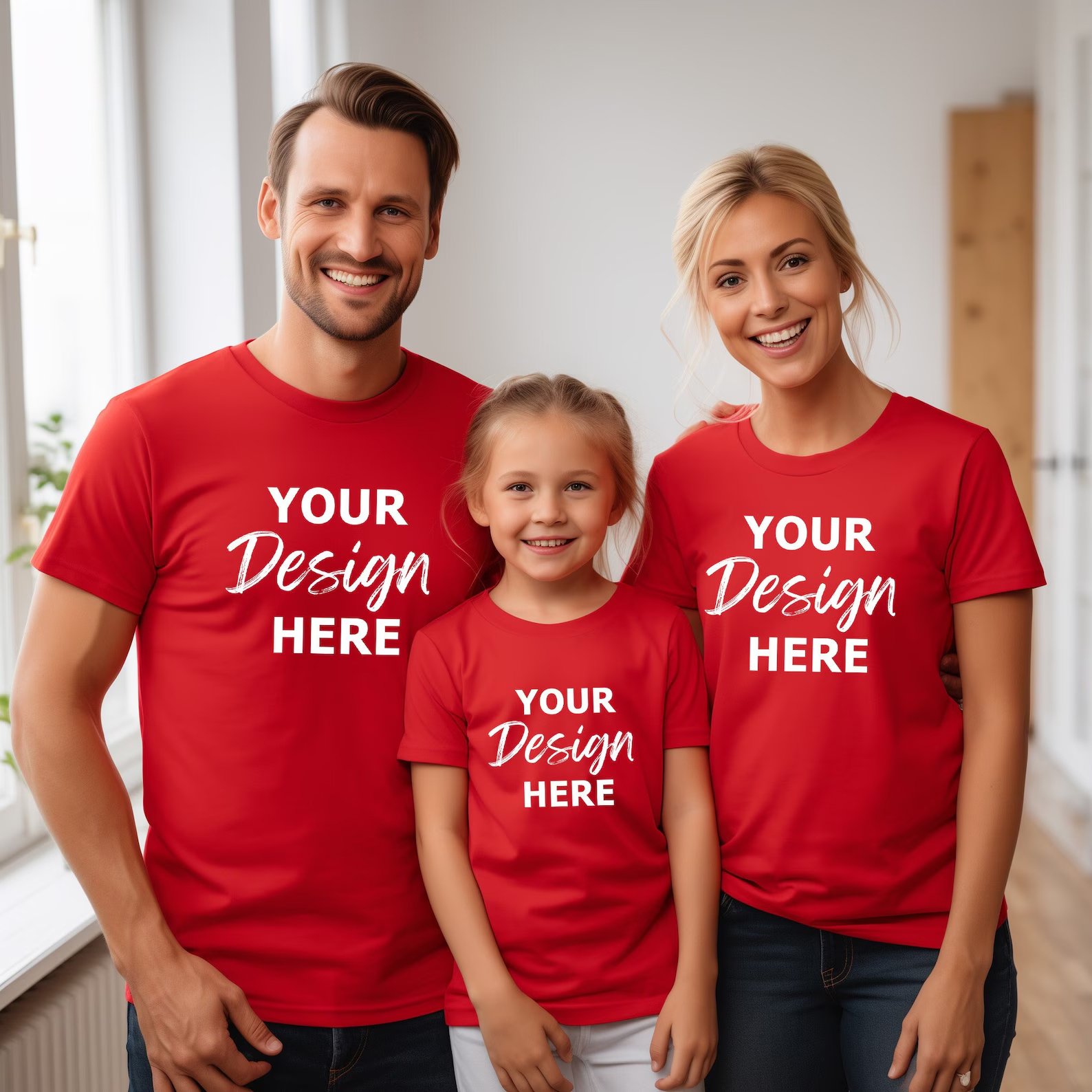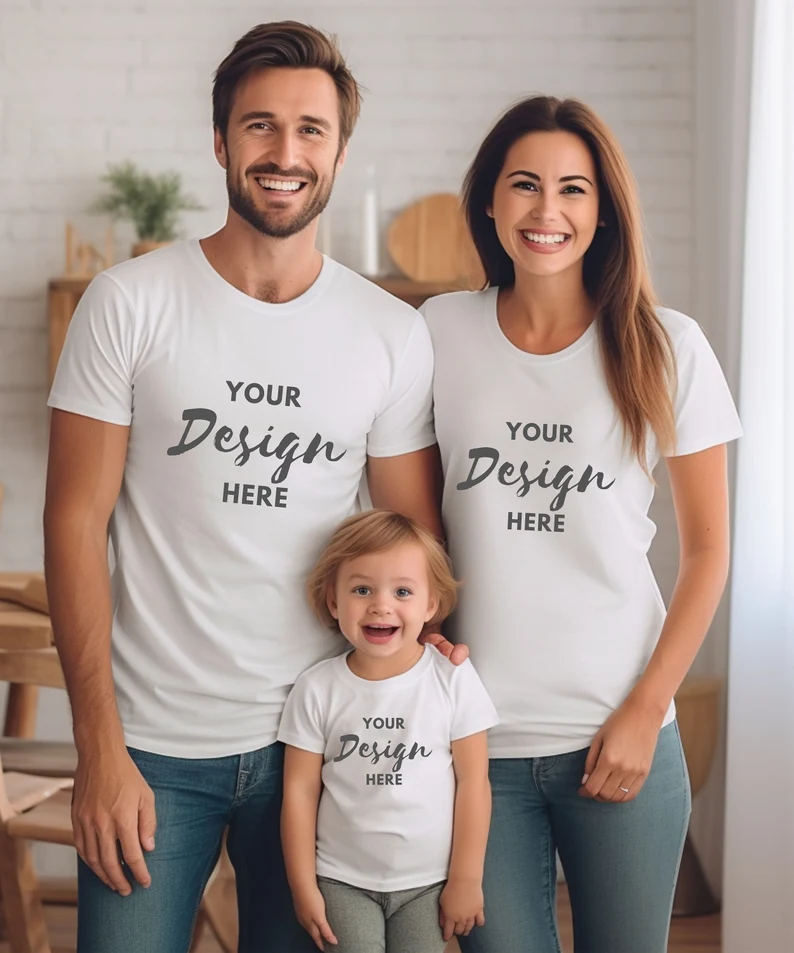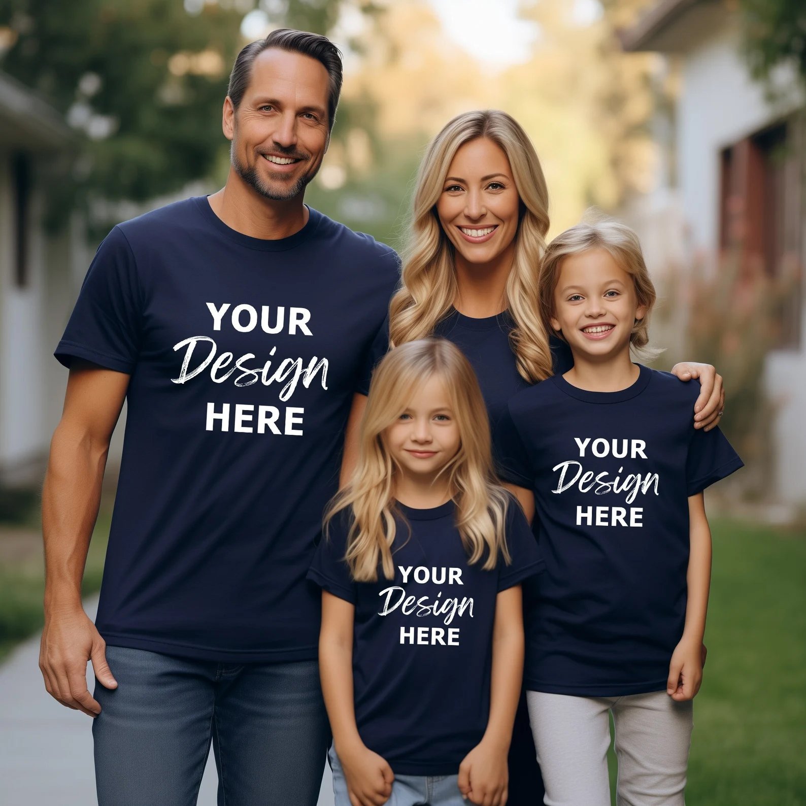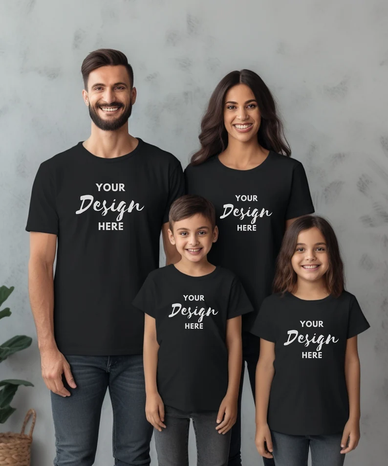 Design your own matching family t-shirts with our “Your Design Here” option. Perfect for vacations, reunions, birthdays, or special occasions, these customizable tees let you add your unique artwork, text, or logo. Made from premium fabric for comfort and durability, our personalized t-shirts are a stylish way to showcase your creativity and make lasting memories together.
