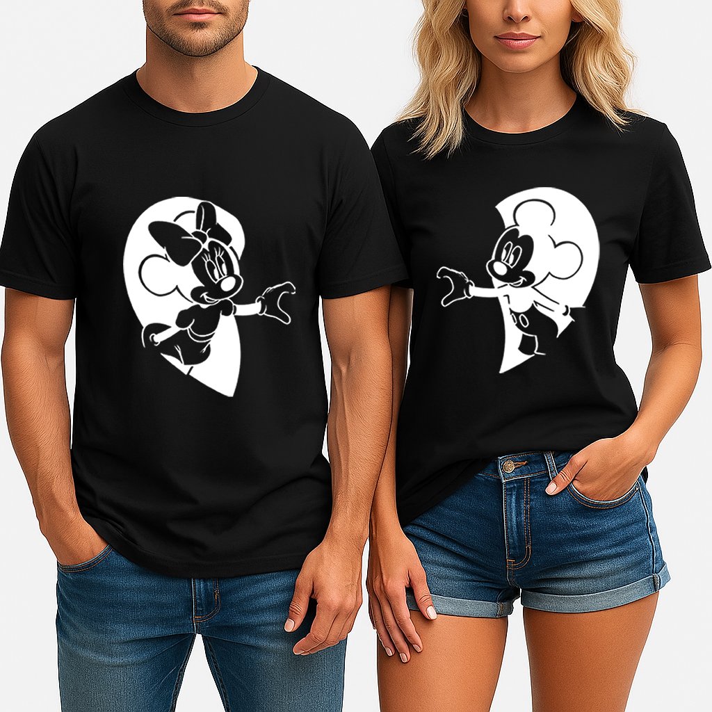 Show off your perfect match with these adorable Half Heart Couple T-Shirts featuring a fun Mickey & Minnie design. When worn together, the shirts create a heart that connects the two characters. Ideal for anniversaries, couple photoshoots, or just sharing a little love in style. Made from soft, breathable cotton for all-day comfort. A must-have for Disney-loving duos!